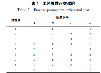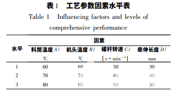 根據前期原理性試驗結果,確定擠出工藝參數的 影響因素及水平,具體見表 1。正交試驗安排見表 2。